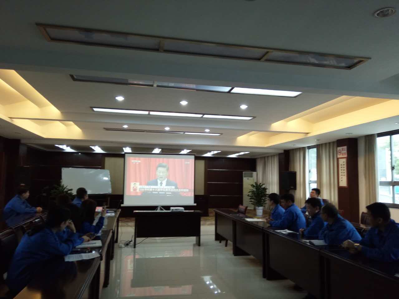 为了喜迎党的十九大顺利召开,即时了解党的十九大盛况,生信公司支部委员会,于2017年10月18日上午9:00,集中组织了支部广大党员和入党积极分子,在公司一楼会议室收看了开幕会的现场直播,支部书记袁安之带头参加。