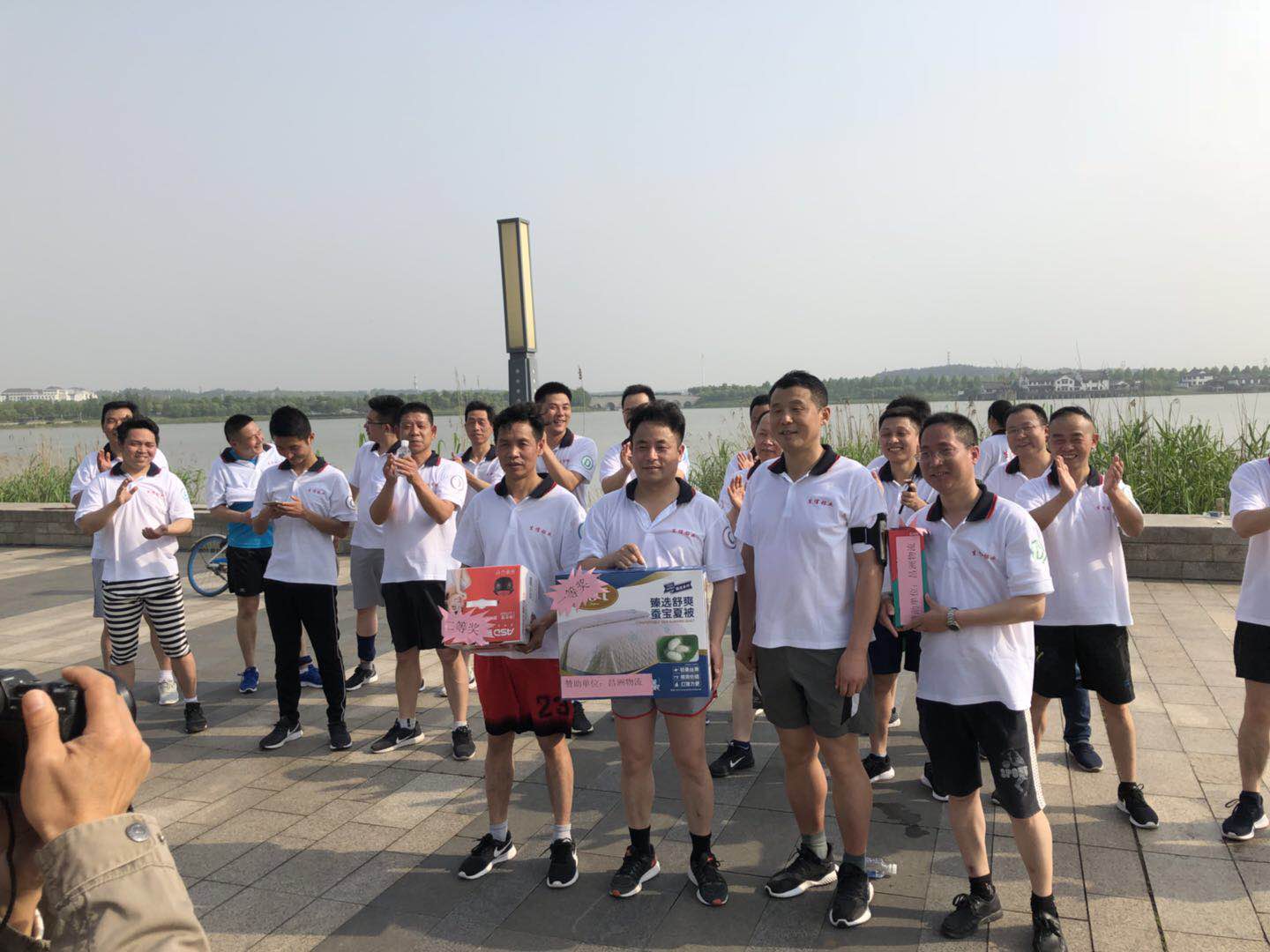 为庆祝5.1国际劳动节,增进销售团队的友谊,提升全体销售人员不畏艰难、敢于奋斗的精神,5月1日,利用节假日时间,由副总经理吴凤宾带队,组织销售部全体人员开展环绕宛陵湖跑步比赛活动。在活动中,分为4个小组,每个小组由5人组成。大家齐心协力、奋力拼搏,经过二个小时的比赛活动,决出第一名即优胜奖。